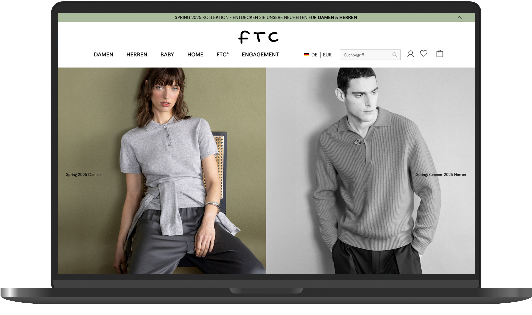 Für FTC Cashmere, ein führendes Fairtrade-Unternehmen im Cashmere Luxussegment, haben wir eine Adobe Commerce (Magento)-Plattform entwickelt. Der Shop verbindet elegantes Design mit hoher Funktionalität und erfüllt die Ansprüche einer anspruchsvollen Zielgruppe. ERP-Integration und Retourenmanagement sorgen für ein nahtloses Einkaufserlebnis.