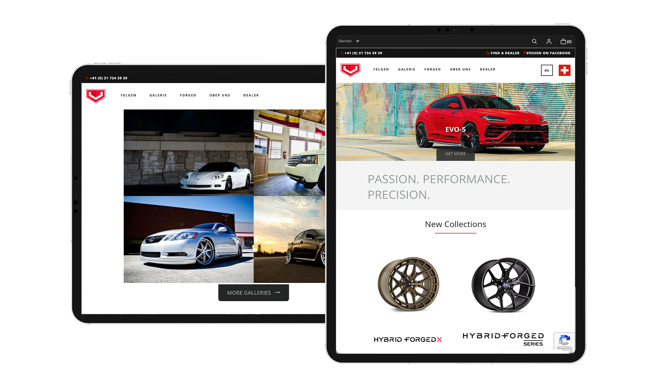 Die Website des offiziellen Schweizer Importeurs für VOSSEN WHEELS spiegelt die hochwertige Marke perfekt wider.